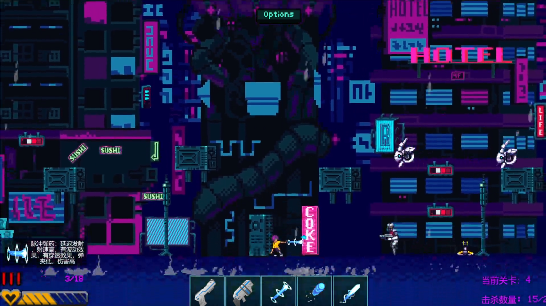 This is my first game.The game uses free art resources found on the website. The game contains 8 weapons with different abilities and 5 intelligent enemies. The difficulty will increase as the level advances. There may be Chinese characters in some places in the game, but this will not affect your gaming experience. The screenshots and videos may be a little blurry. I hope you can download the game to experience it. If you encounter any problems during the game, you can let me know by commenting.