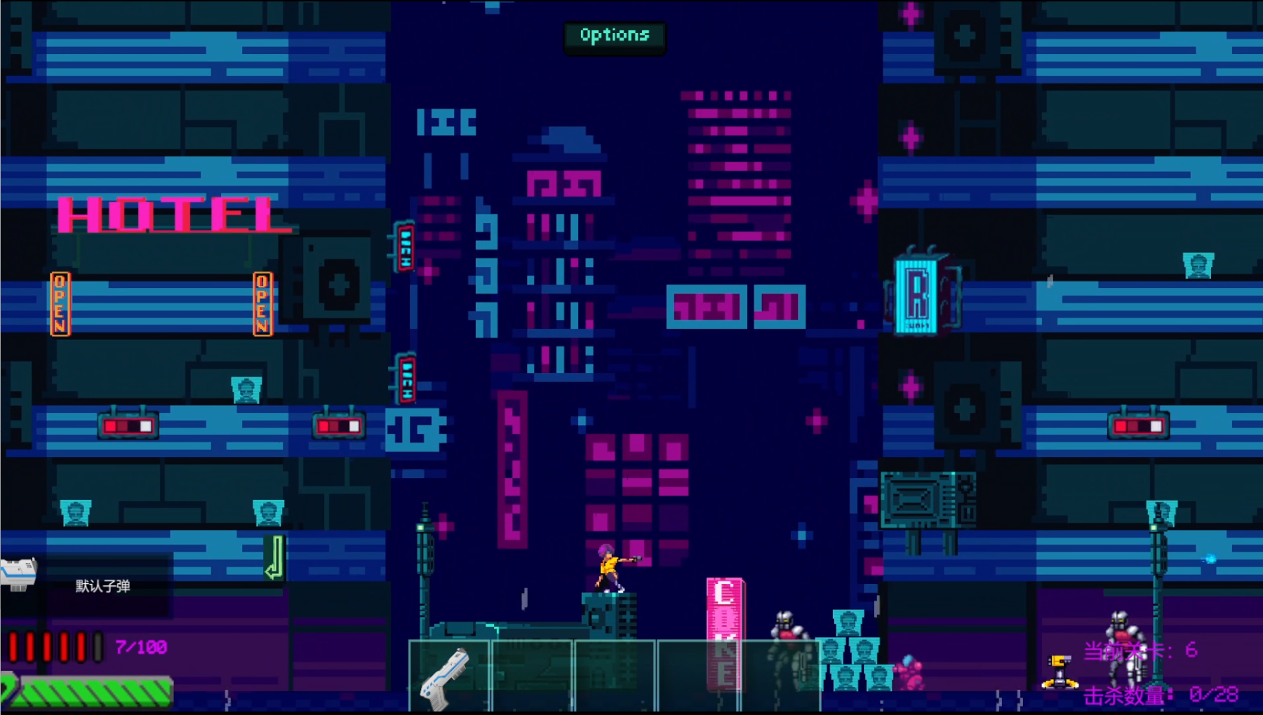 Cyber Maiden: Neon Assault is a Unity-based cyber-style character demo focusing on weapon interaction,and a futuristic city visual style. Is a 2D platform shooting game.